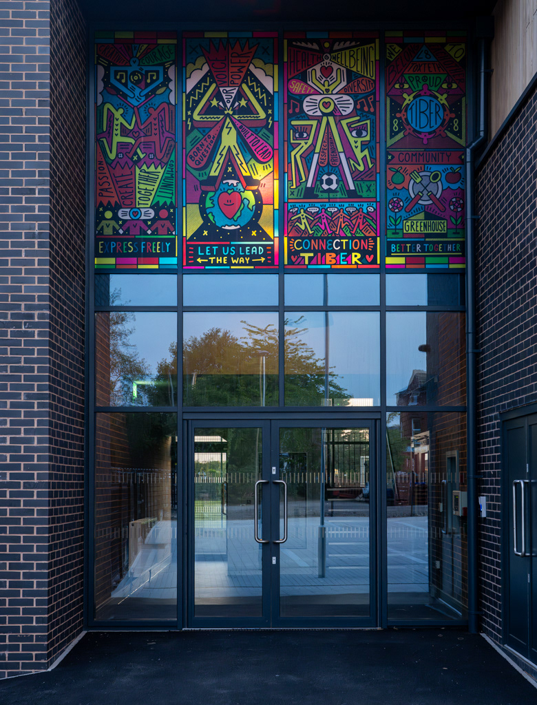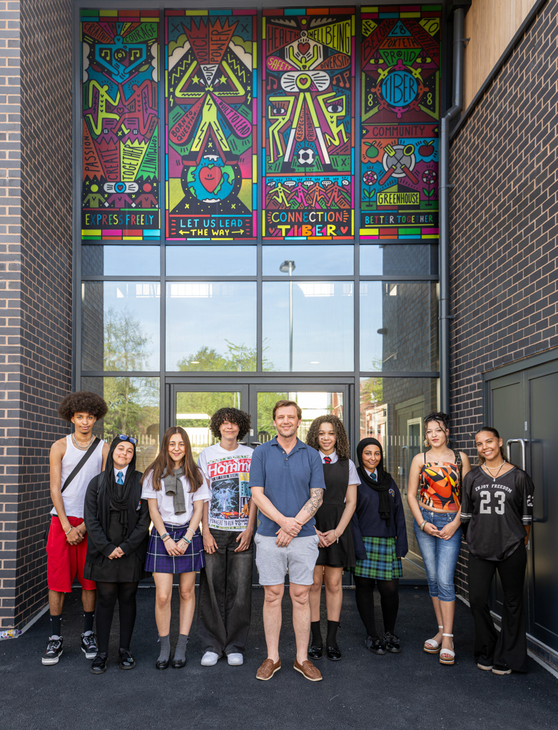 The finished mural now welcomes visitors to the Tiber Centre — a lasting celebration of youth creativity and the spirit of Toxteth.